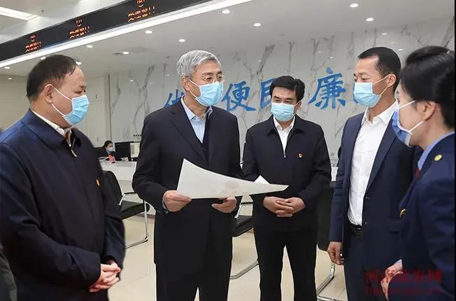 尹弘来到省市场监管局智慧监管中心、政务服务大厅,通过大数据分析应用服务系统、疫苗追溯监管平台等,了解全省市场主体全景画像,商事制度改革成效,疫苗生产、流通和调配情况,并与正在办理业务的商户交谈。在省食品药品检验所、省医疗器械检验所,尹弘查看中药标本展示、理化分析,和口罩、防护服等防疫物资检测情况,与科研人员深入交流。