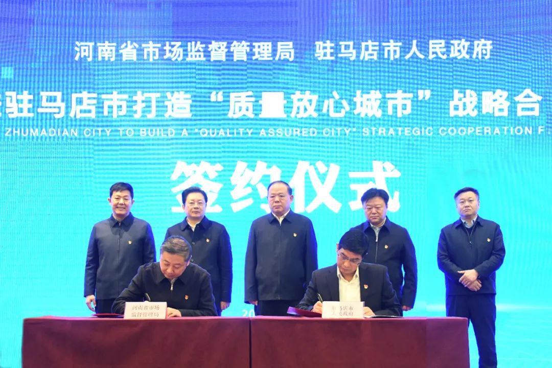12月16日,河南省市场监督管理局与驻马店市人民政府签署《关于共同推进驻马店市打造“质量放心城市”战略合作框架协议》。河南省市场监督管理局党组书记、局长马林青,驻马店市委书记陈星,驻马店市人民政府市长朱是西出席签约仪式。